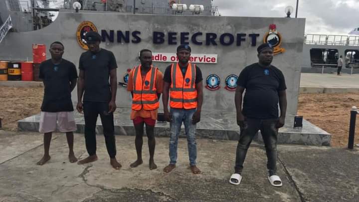 While parading the suspects on Wednesday, the Commander of NNS Beecroft, Commodore Kolawole Oguntuga, said they were arrested while they were attacking a local from whom they tried stealing a boat engine.